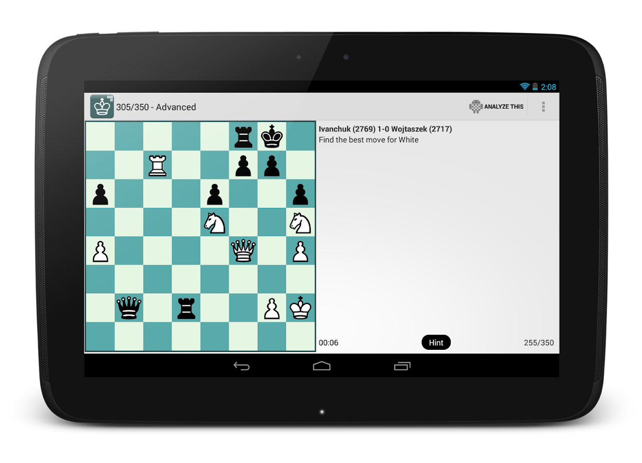 Muy buena aplicación sí señor, ya no por la cantidad de problemas que hay y que te puedes descargar por un muy módico precio (1-1,50 €), que también, sino por el tema de poder analizar cualquier posición desde la también gratuita app: Analyze This. Un diez!